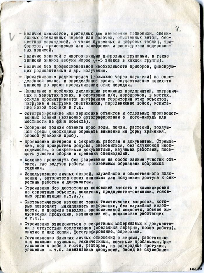 Листы инструкции расположила я не по - порядку. По этой инструкции надо было определять вражеского нелегала. Проверьте себя . ВЫ ВРАГ СССР если вы фотографируете природу, дома, людей, мало употребляете хлеба за обедом, . . .